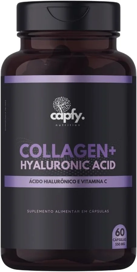 Colágeno Hidrolisado + Ácido Hialurônico + Vitamina C 60 Cápsulas 550mg Premium Capfy. Nutrition para Cabelo Beleza da Pele Unha e Articulações